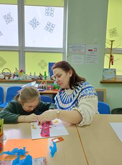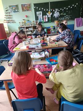 Na zajęciach wykonujemy wiele artystycznych prac i projektów. Każdy z uczestników na miarę swoich możliwości wykonuje swoje ” arcydzieła”.