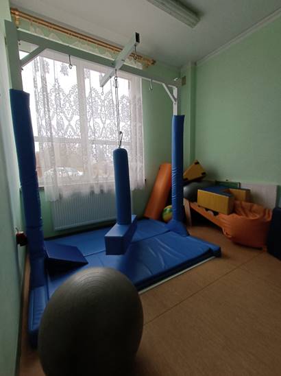 Warunki lokalowe są przystosowane do potrzeb osób niepełnosprawnych. Dotarcie ułatwia płaski wjazd do świetlicy, która znajduje się na parterze blisko drzwi wejściowych. Możliwe jest korzystanie z łazienki na tym samym poziomie. Świetlica obejmuje dwa pomieszczenia, w których znajduje się specjalistyczny sprzęt i pomoce terapeutyczne zakupione z projektu. Zapewnia to beneficjentom lepszy rozwój oraz świetną zabawę. Ciesząca się szczególną popularnością huśtawka pozwala wprowadzać ćwiczenia z zakresu integracji sensorycznej.