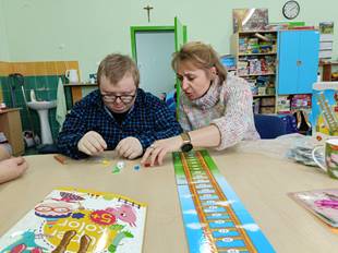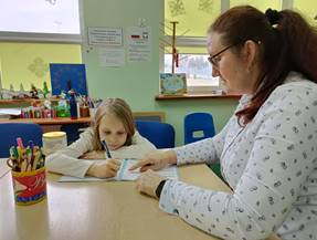 Świetlica Adaptacyjno – Rehabilitacyjna w Dąbrowie Białostockiej działa od ponad 20 lat. Stanowi integralną część Stowarzyszenia ,,Radość Życia”. Pomocą objętych jest piętnaścioro dzieci niepełnosprawnych. Beneficjenci uczęszczający to osoby, które były objęte wcześniejszymi projetkami z PEFRONU i kontynuują dalszą rehabilitację. W zależności od potrzeb uwzględnionych w orzeczeniach beneficjenci uczestniczą w indywidualnych zajęciach prowadzonych przez pięcioro specjalistów. Są nimi: oligofrenopedagog, pedagog, infopedagog, rehabilitant i logopeda. Ważną rolę odgrywa pomoc opiekunki, która dba o bezpieczeństwo dzieci podczas drogi do świetlicy i w oczekiwaniu na zajęcia. Udział beneficjentów w specjalistycznych zajęciach zapewnia im szybsze oraz efektywniejsze pokonywanie trudności we wszystkich sferach rozwojowych. Ponadto panująca w naszej świetlicy rodzinna atmosfera pomaga przełamać bariery społeczne i komunikacyjne. Dzieci często nie chcą wychodzić ze świetlicy, bo czują się tutaj swobodnie i bezpiecznie. Pracownicy pamiętają o urodzinach podopiecznych, mikołajkach czy wspólnej Wigilii. Otaczają podopiecznych miłością, zrozumieniem i cierpliwością. Uświetnienie uroczystości upominkami możliwe jest dzięki funduszom uzyskanym z projektów gminnych.